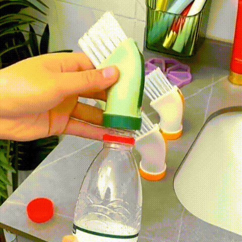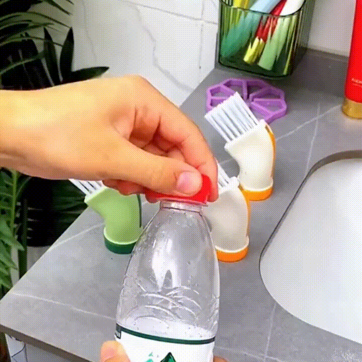 Skruva helt enkelt fast Ecoborsten på en vanlig mineralvatten- eller dryckesflaska, så sitter den stadigt på plats – inga extra delar behövs.